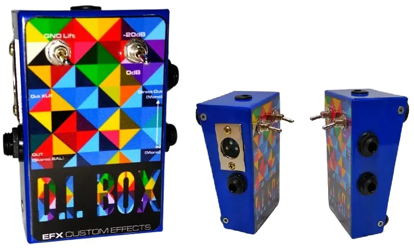 DI Box (Direct Injection Box) tem a função de converter o sinal não balanceado de alta impedância (como o que sai do instrumento) em um sinal balanceado de baixa impedância, permitindo uma passagem do sinal por um cabo maior, sem perdas e ruídos. Isso permite que o sinal do instrumento seja ligado diretamente em preamps de microfone ou mesas de som.